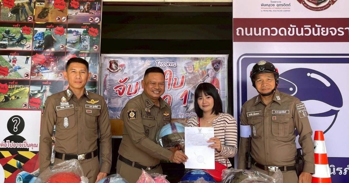 วันที่ 30 ธ.ค.68 นำโดย พ.ต.อ.ไกรสิทธิ พรหมปฏิมา ผกก.สภ.เมืองอุตรดิตถ์ พร้อมด้วย พ.ต.ท.นฤพล คนชม รอง ผกก.จร.ฯ,ว่าที่ พ.ต.ต.สมคิด มั่นเหมาะ สว.จร.ฯ และตำรวจจราจรในสังกัด ตั้งจุดตรวจกวดขันวินัยจราจร และขับเคลื่อนโครงการ “จับ 1 ใบ แลก 1 ใบ”(1 ใบสั่งข้อหาไม่สวมหมวกนิรภัย=ปรับ 200 บาท=แจกหมวกนิรภัย 1 ใบ) โดยมีผู้เข้าร่วมโครงการ จำนวน 13 คน ณ ถ.สำราญรื่น ต.ท่าอิฐ อ.เมือง จ.อุตรดิตถ์