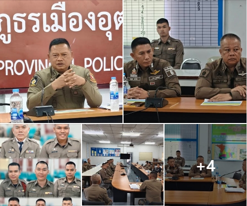 พ.ต.อ.ไกรสิทธิ พรหมปฏิมา ผกก. สภ.เมืองอุตรดิตถ์ พร้อมด้วย พ.ต.ท.ธาวิน สุขพูล รอง ผกก.ป.สภ.เมืองอุตรดิตถ์, พ.ต.ท.นฤพล คนชม รอง ผกก. จร.สภ.เมืองอุตรดิตถ์ ประชุมชี้แจงมอบนโยบายแก่ข้าราชการตำรวจที่ย้ายมาดำรงตำแหน่งใหม่ฯ ณ ห้องประชุม สภ.เมืองอุตรดิตถ์