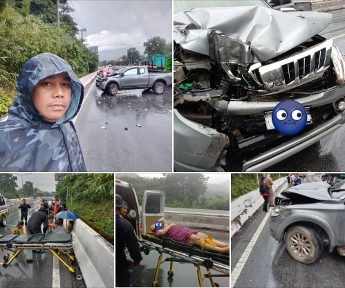 สายตรวจไฮ่ฮ้า.ร.ต.ต.สมชาย สุขใส ออกปฏิบัติหน้าที่ เหตุ รถเฉี่ยวชนกัน ระหว่างรถบรรทุกพ่วง กับรถยนต์กระบะ มีผู้ได้รับบาดเจ็บเป็นหญิง 2 รายไม่มีสิ่งของหลวงเสียหาย กู้ภัยวัดหมอนไม้ นำคนเจ็บส่ง ร.พ.พิษณุเวช. เหตุเกิดทางขึ้นเขาพลึง ม.7 ต.บ้านด่านนาขาม อ.เมือง จ.อุตรดิตถ์