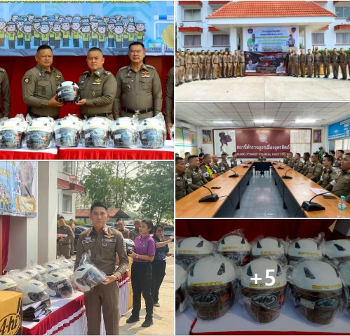 พ.ต.อ.ไกรสิทธิ พรหมปฏิมา ผกก.สภ.เมืองอุตรดิตถ์, พ.ต.ท.นฤพล คนชม รอง ผกก.จร.สภ.เมืองอุตรดิตถ์ รับมอบหมวกนรภัย จำนวน 50 ใบและป้ายไวนิล จาก พล.ต.ต.สุทธิพงศ์ เป๊กทอง ผบก. ภ.จว. อุตรดิตถ์ เพื่อนำไปใช้ตามโครงการจิตอาสาจราจร รณรงค์การขับขี่ปลอดภัยสวมหมวกนิรภัยเพื่อลดอุบัติเหตุทางบกในช่วงเทศกาลสงกรานต์ พ.ศ.2528 และได้มอบนโยบายและแนวทางปฏิบัติตามโครงการฯ ให้กับ จนท.ตร.จราจร สภ.เมืองอุตรดิตถ์ ณ ห้องประชุม สภ.เมืองอุตรดิตถ์ ต.ท่าอิฐ อ.เมือง จ.อุตรดิตถ์