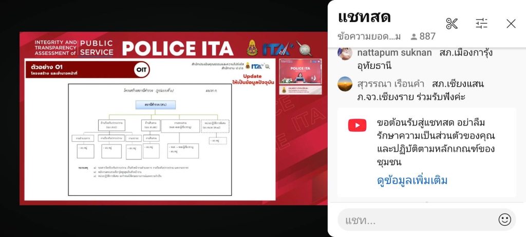 26 พ.ย.2567 พ.ต.อ.ไกรสิทธิ พรหมปฏิมา ผกก.สภ.เมืองอุตรดิตถ์ พร้อมเจ้าหน้าที่ เข้าร่วมกิจกรรมชี้แจงการประเมินคุณธรรมและความโปร่งใสในการดำเนินงานของหน่วยงานภาครัฐ (ITA) ของสถานีตำรวจนครบาลและสถานีตำรวจภูธร ประจำปีงบประมาณ พ.ศ. 2568 รูปแบบ online โดยมี พล.ต.ท.ณวัตน์ อารยางกูร รองจเรตำรวจแห่งชาติ เป็นประธานในพิธีเปิด ผ่านระบบ ZOOM และถ่ายทอดสดผ่าน YouTube Channel Clinic ITA