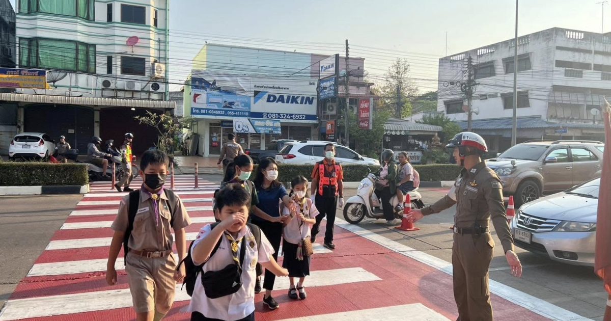 อำนวยความสะดวกด้านการจราจร พาเด็กนักเรียน และประชาชนข้ามถนน บริเวณ ถ.ประชานิมิตร ต.ท่าอิฐ อ.เมือง จ.อุตรดิตถ์
