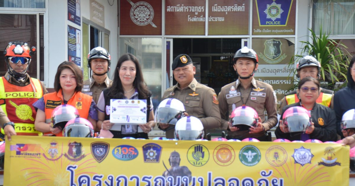 โดยการอำนวยการสั่งการของ พล.ต.ต.วรวัฒน์ มะลิ รอง ผบช.ภ.6,พล.ต.ต.สุทธิพงศ์ เป๊กทอง ผบก.ภ.จว.อุตรดิตถ์ พ.ต.อ.ลิขิตพงศ์ ศรีนางราง รอง ผบก.ภ.จว.อุตรดิตถ์ มอบหมายให้ พ.ต.อ.ไกรสิทธิ พรหมปฏิมา ผกก.สภ.เมืองอุตรดิตถ์ พ.ต.ท.นฤพล คนชม รอง ผกก. จร.สภ.เมืองอุตรดิตถ์, พ.ต.ท.สัณฐิฏิยศ วชิรเชษฐภักดี สว.จร.สภ.เมืองอุตรดิตถ์ พร้อมด้วยข้าราชการตำรวจ สภ.เมืองอุตรดิตถ์ ,คณะกรรมการ กต.ตร.สภ.เมืองอุตรดิตถ์ และ อาสาจราจร ดำเนินกิจกรรม “โครงการถนนปลอดภัย : สวมหมวกนิรภัย เทิดไท้องค์ราชัน ราชินี เพื่อเป็นแบบอย่างที่ดี ในการ สร้างสังคมที่ปลอดภัย สุขกายสุขใจกันทุกคน” พร้อมทั้งkick off แจกหมวกนิรภัย ให้กับผู้ที่ไม่สวมหมวกนิรภัย จำนวน 45 ใบ พร้อมด้วยบริษัทกลาง จัดทำ พรบ. สำหรับผู้ขาดต่อ ตรวจสอบสภาพรถเปลี่ยนไฟท้าย,ไปส่องสว่าง โดยสำนักงานป้องกันและบรรเทาสาธารณภัยจังหวัดอุตรดิตถ์ ณ จุดตรวจตามโครงการถนนปลอดภัยฯ ถ.ประชานิมิตร ต.ท่าอิฐ อ.เมือง จ.อุตรดิตถ์ โดยมี นางสาวนารีรัตน์ สุขเอม ผู้จัดการบริษัทกลางคุ้มครองผู้ประสบภัยจากรถ จ.อุตรดิตถ์ นางสาวชาครียา เศรษฐเสรี หัวหน้าสำนักงาน ป้องกันและบรรเทาสาธารณะภัยจังหวัดอุตรดิตถ์ ตัวแทนจาก แขวงการทาง, ทางหลวงชนบท สถานศึกษาในเส้นทาง 4 โรงเรียน พร้อมเจ้าหน้าที่ร่วมกิจกรรม