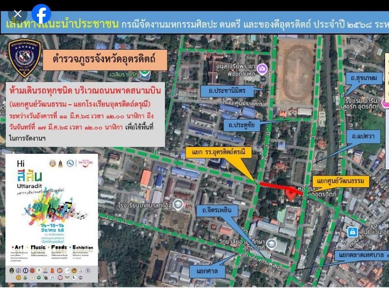 แจ้งปิดการจราจรชั่วคราว งานมหกรรมศิลปะ ดนตรี และของดีอุตรดิตถ์ ประจำปี 2568 โดยวัฒนธรรมจังหวัดอุตรดิ
